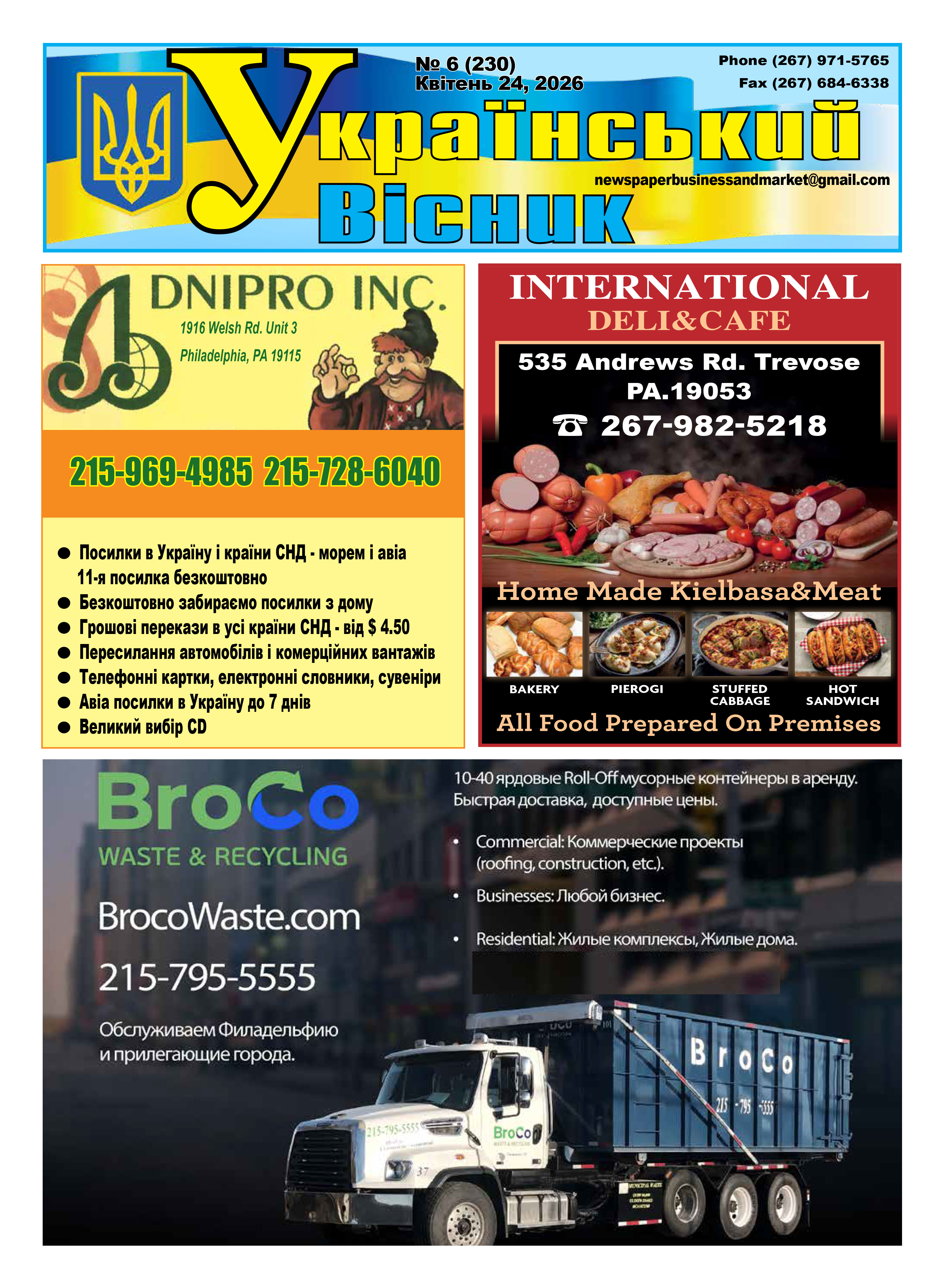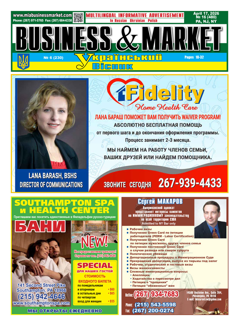 We are a weekly Multilingual Informative Advertisement covering New York, New Jersey and Pennsylvania. Our commitment to the Russian, Ukrainian, and Polish communities is demonstrated in our separate issues filled with interesting content tailored to each specific community.Apríl 2026
